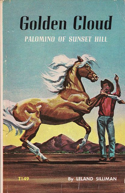 I didn’t own a horse, mind you. We lived in a working-class suburb in Rochester, New York, on around one-quarter of an acre, a lot small enough that we had to throw a frisbee low and short so as not to fly next door into the neighbor’s petunias. There was no room, let alone money, for a horse. But I fed my horse obsession with books. I tore through all of my father’s Black Stallion books, still in their luridly colored 1950s dust jackets. For around two weeks, I wanted to be Alec Ramsey, stranded on a desert island with a gorgeous, wild black horse and then tearing around the racetrack in Queens. I read Black Beauty (alas, poor Ginger!), National Velvet, and Misty of Chincoteague. My latest fix was a book called Golden Cloud, about a boy from Chicago, who is invited to his uncle’s horse ranch one summer and tames a palamino, so (of course) his uncle gives it to him! and invites him back every summer.