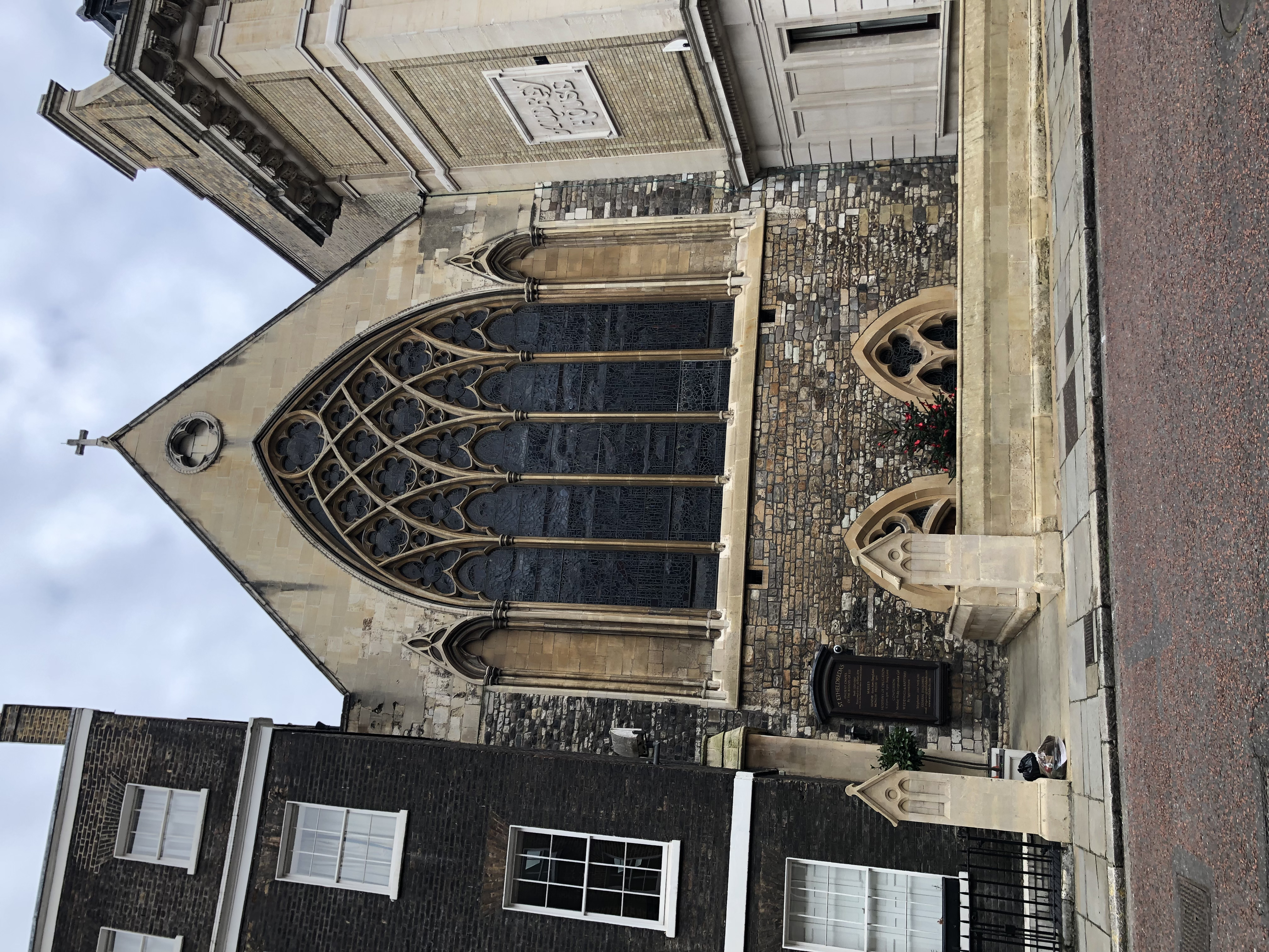 As usual when nearing the site of a crime, Corravan quickened his pace. We turned north on Fetter Lane and Corravan nodded to the right, through an open arch that led onto Ely Place. “St. Etheldreda’s,” he said. I peered in to find a church made of pale brick, its only adornment a stained-glass window in the Gothic style, probably thirteenth century. “I’ve always liked it,” Corravan added. “No frills or fuss.”
